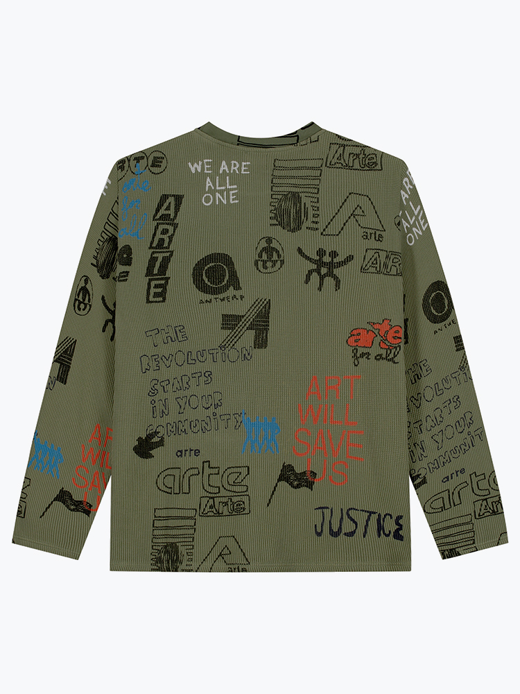 Arte Antwerp – Arte Antwerp - Allover Waffle Longsleeve Green - T-Shirts - Heren – Groen – T-Shirts