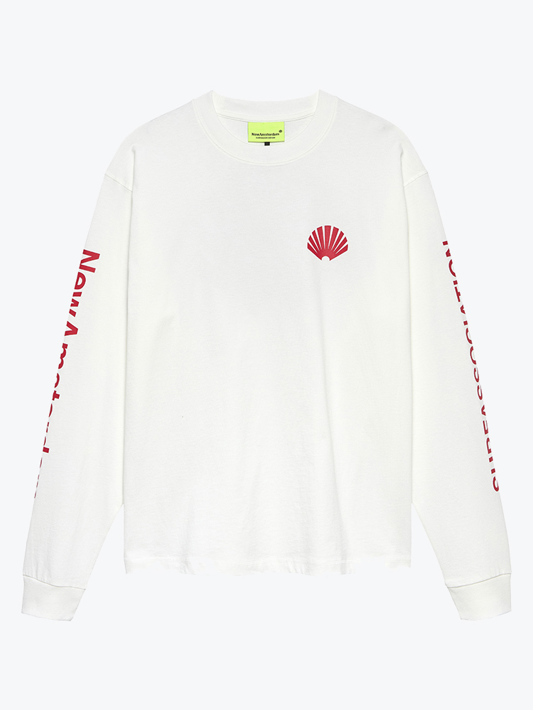 New Amsterdam Surf Association - Logo Longsleeve Washed White/Deep Red Red - T-Shirts - Heren